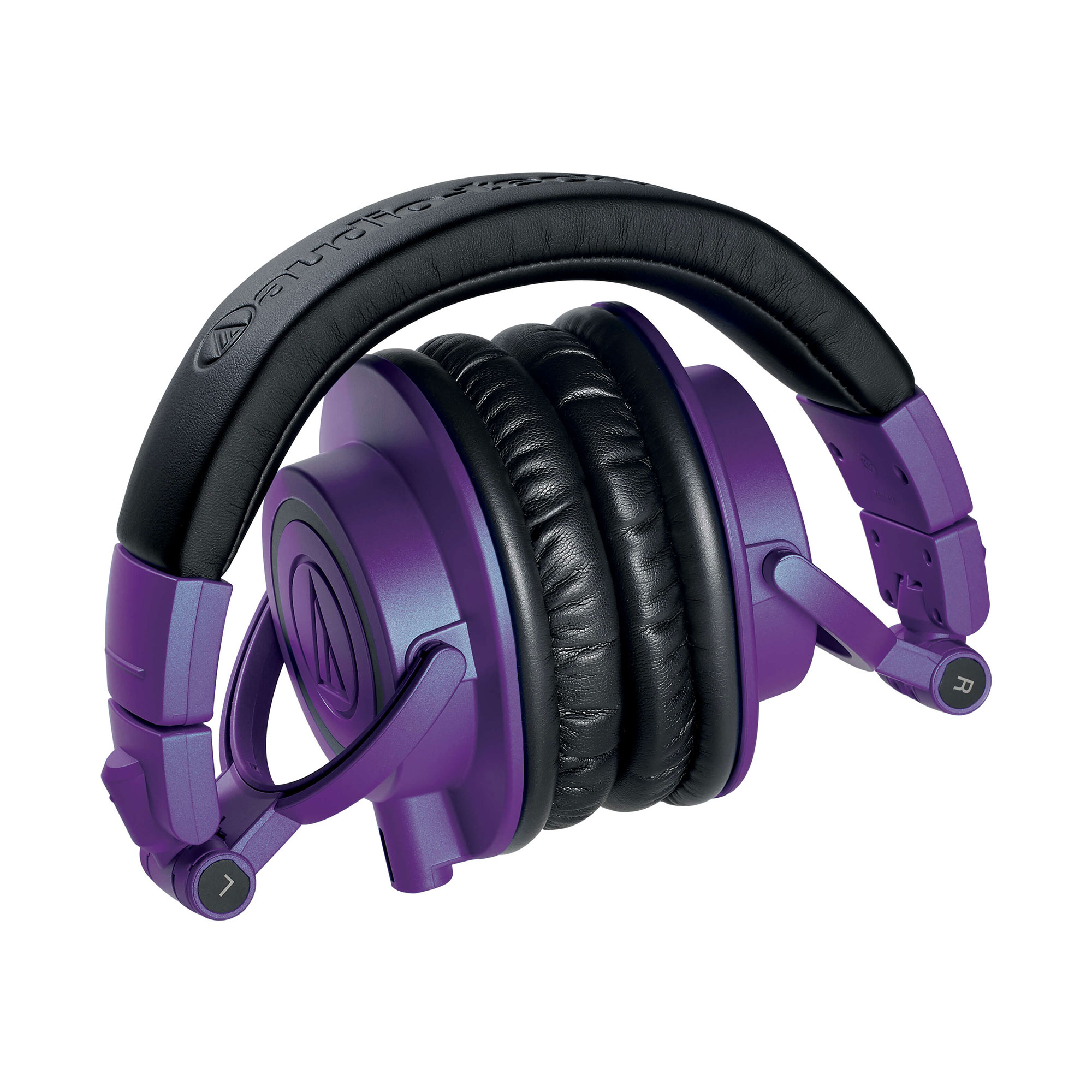 We are thrilled to announce the release of A-T’s new ATH-M50xPB and ATH-M50xBT PB limited-edition headphones! Featuring a striking purple and black color scheme, this exclusive design will be available in both the traditional ATH-M50x wired model and, in a first for our limited editions, the ATH-M50xBT wireless model.