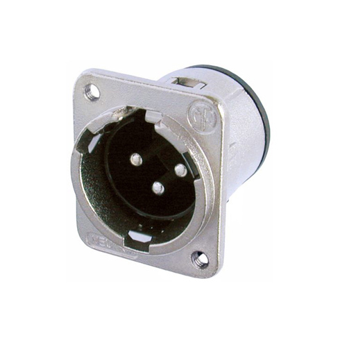 3 pole male receptacle, solder cups, black metal housing, silver contacts, M3 mounting holes Universal D-size metal body XLR panel mount series. UL recognized component.